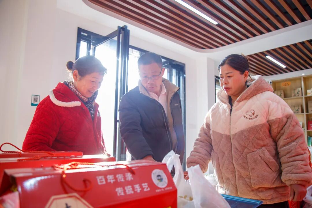 除了優(yōu)質(zhì)選品,在運營模式上,基地還采用線上線下雙輪驅(qū)動。線上以“祁家灣優(yōu)品”抖音直播間為主要陣地,組建了由5名村“兩委”干部構(gòu)成的直播團(tuán)隊,定期開展直播帶貨,直播場景覆蓋生產(chǎn)現(xiàn)場等多種實地環(huán)境。線下則通過實體展示館進(jìn)行產(chǎn)品體驗、零售以及面向企業(yè)與社區(qū)的團(tuán)購批發(fā)業(yè)務(wù),形成銷售閉環(huán)。