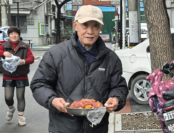 上午10時(shí),長(zhǎng)桌上漸漸擺滿了四十余道菜品。李師傅做的紅燒魚寓意“年年有余”,黃師傅的八寶飯?zhí)鹣丬浥?,還有趙師傅拿手的包子,南北風(fēng)味交融。黃師傅感慨道,以前小區(qū)更像一個(gè)單純的居住場(chǎng)所,現(xiàn)在卻真正有了家園的模樣。“孫子不會(huì)做的作業(yè),群里一問(wèn)就有三、四個(gè)鄰居幫忙解答,這種踏實(shí)感,千金難買。”