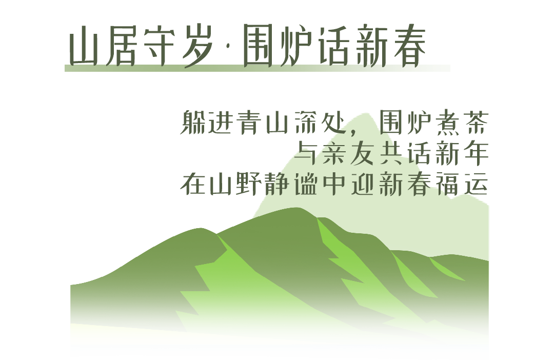 新春期間,開闊草坪上搭建了專屬圍爐區(qū),配上年貨小食、暖茶甜湯,三五好友圍坐取暖,閑話家常;清晨推窗可見薄霧繚繞的山林,午后可沿景區(qū)步道徒步尋梅,傍晚在庭院點(diǎn)燃篝火,看星火與星光交映,沉浸式感受山野新春的靜謐與溫暖。