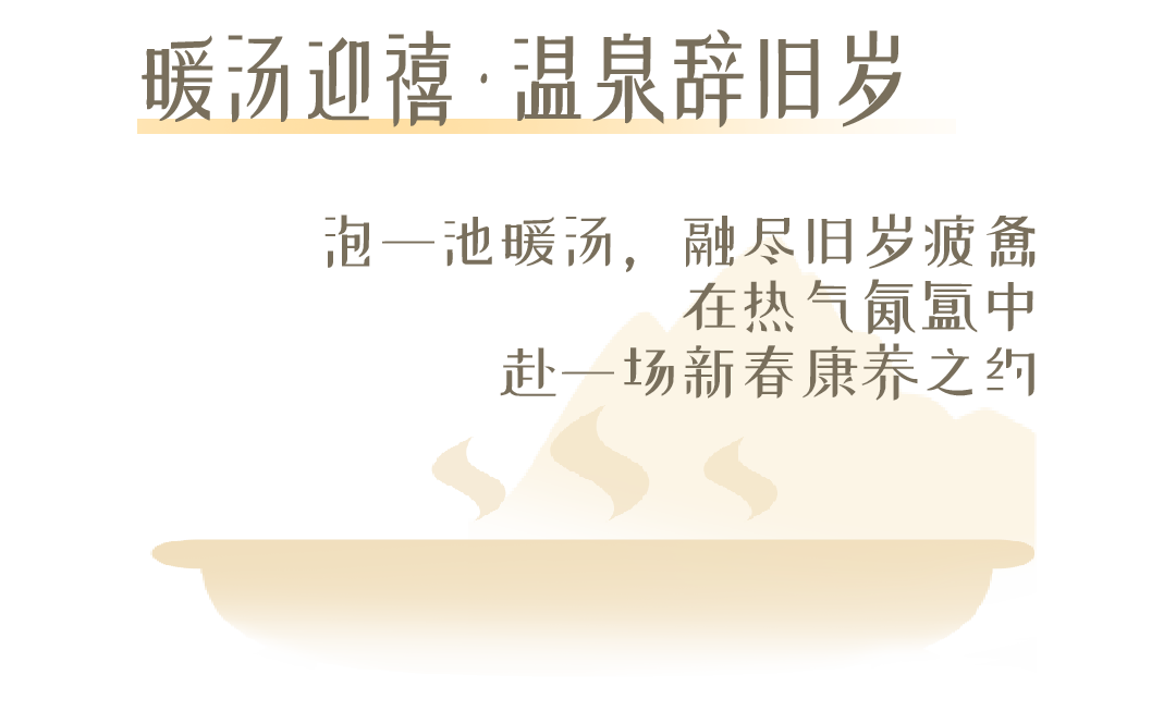 此外,還提供新春溫泉套餐,在禪意空間中泡湯迎新春,愿新歲福暖安康。
