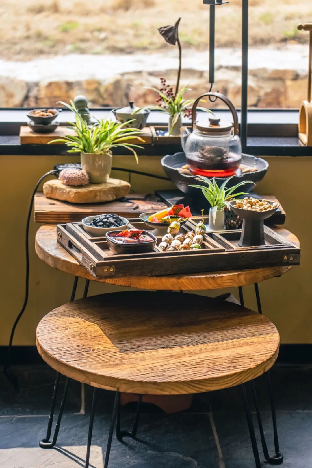 一間房,藏在甘露山文創(chuàng)城里的文藝民宿,32間客房與公共空間錯(cuò)落分布,設(shè)計(jì)上主打“簡約而不簡單”,水泥質(zhì)感墻面搭配原木家具、綠植盆栽,文藝氣息十足。