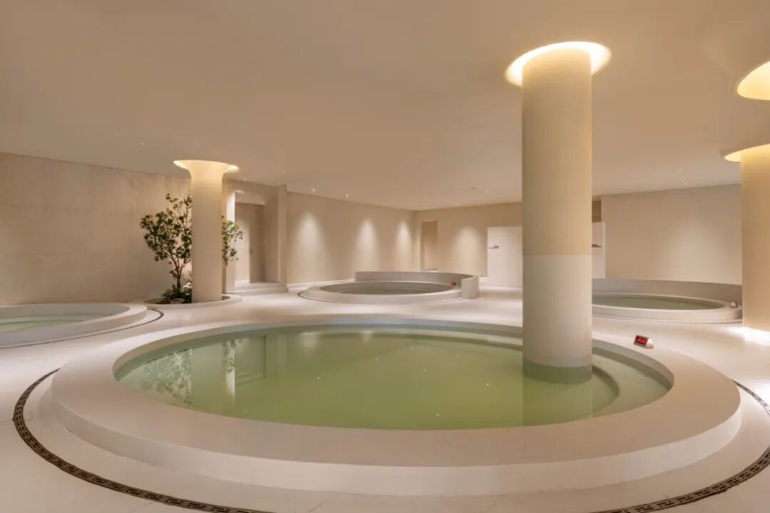 140間客房均自帶私湯院落,庭院內(nèi)草木蔥蘢,私密性極佳。民宿共設(shè)29處室內(nèi)外湯池,分別主打康養(yǎng)、美容、舒緩等不同功效,搭配中草藥包,養(yǎng)生與舒適兼?zhèn)洹?/p>