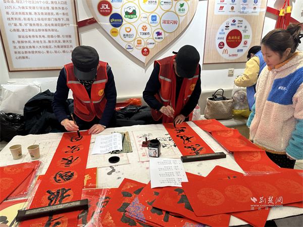 活動現(xiàn)場張燈結彩,福字、春聯(lián)相映成趣,處處洋溢著喜慶祥和的節(jié)日氣息。書法志愿者現(xiàn)場揮毫潑墨,一筆一畫寫下新春祝福,一幅幅寓意吉祥的春聯(lián)與福字深受大家喜愛,戶外勞動者們駐足欣賞、挑選心儀對聯(lián),在墨香中提前感受春節(jié)的儀式感。