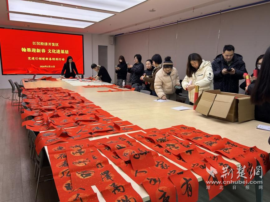 江漢經(jīng)濟(jì)開發(fā)區(qū)開展“翰墨迎新春 文化進(jìn)基層”黨建引領(lǐng)暖新春特別行動(dòng),邀請書法家現(xiàn)場書寫春聯(lián)和“?!弊?,為園區(qū)企業(yè)員工、新就業(yè)群體和流動(dòng)黨員代表送上節(jié)日祝福,在傳承傳統(tǒng)文化中傳遞組織溫暖。