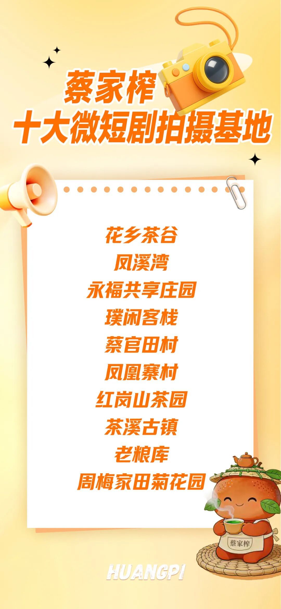 這十大場景,是蔡家榨的顏值擔當,有鏡頭里取之不盡的美景、講不完的故事。從田園詩意到古鎮(zhèn)古韻,從生態(tài)茶鄉(xiāng)到工業(yè)文創(chuàng),多元風格全覆蓋,輕松適配各類微短劇創(chuàng)作需求。