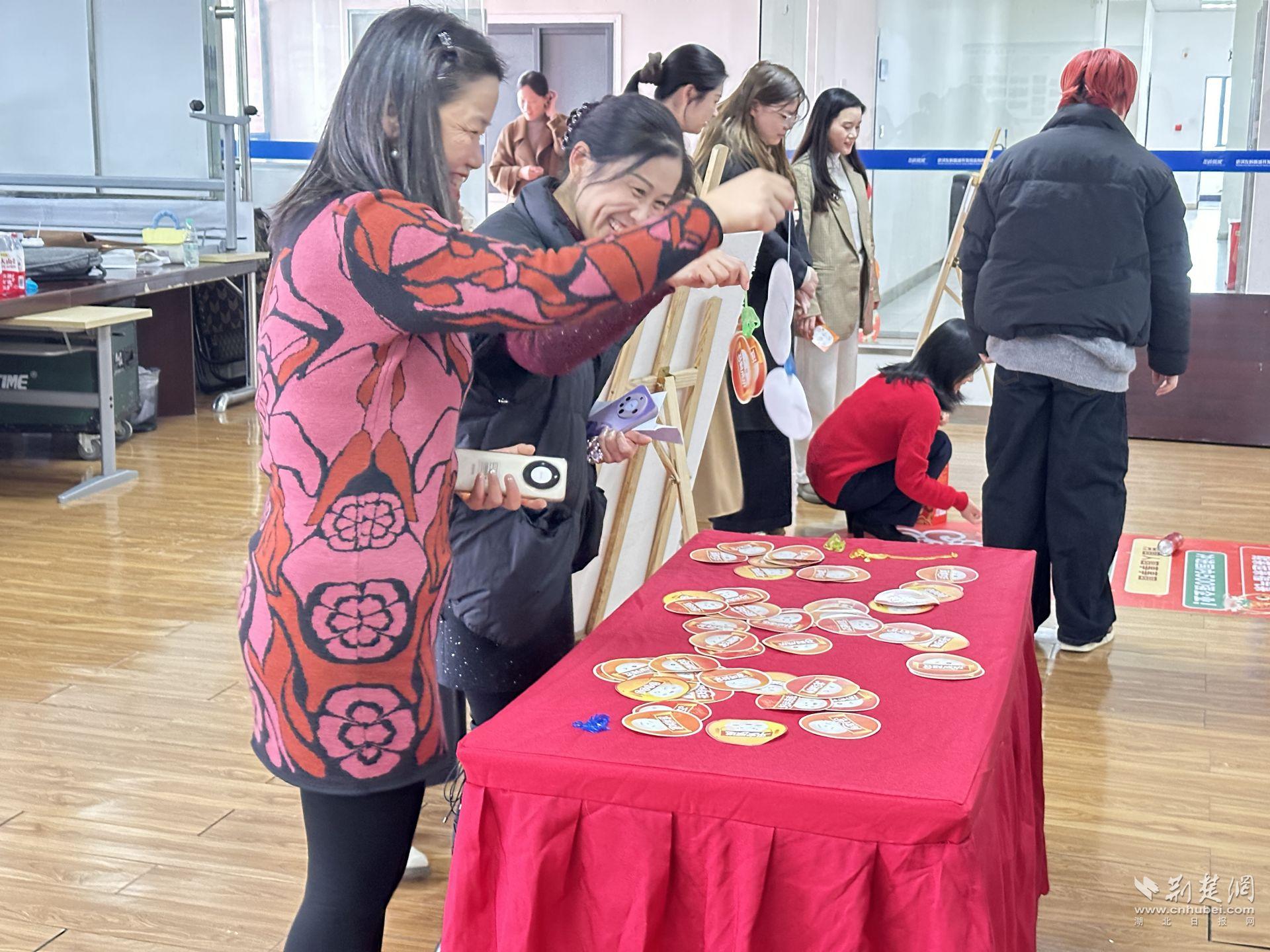 自由游戲區(qū)同樣人氣十足。滾動(dòng)“湯圓”的祝福賽道前,員工認(rèn)真調(diào)整力度,期待停在“招商企業(yè)100家!”“沖進(jìn)國內(nèi)500強(qiáng)企業(yè)”等激勵(lì)區(qū)域;“福氣粘粘到”桌前,十秒鐘的挑戰(zhàn)讓人屏氣凝神;燈謎區(qū)前,有人皺眉思索,有人靈光一閃,最終猜出謎底贏得掌聲。