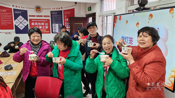 除了共慶歡樂(lè),更有專(zhuān)屬關(guān)懷。長(zhǎng)江紫都社區(qū)聯(lián)合中民萬(wàn)家(武漢)居家養(yǎng)老服務(wù)有限公司舉辦活動(dòng),工作人員和志愿者還專(zhuān)程上門(mén),將滿載心意的暖心湯圓送到行動(dòng)不便的老人家中,傳遞“一個(gè)都不少”的社區(qū)溫情。梅花苑社區(qū)在“湯圓暖心,喜樂(lè)元宵”活動(dòng)中,別出心裁地融入了健康關(guān)懷,邀請(qǐng)口腔醫(yī)院醫(yī)生開(kāi)展健康講座,為老人們講解春季保健和口腔護(hù)理知識(shí),在傳承民俗的同時(shí),守護(hù)長(zhǎng)輩的健康。佳韻社區(qū)在活動(dòng)中講解元宵節(jié)由來(lái),帶領(lǐng)老人們重溫文化根脈。手工制作燈籠時(shí),大家互幫互助,在協(xié)作中加深情誼。