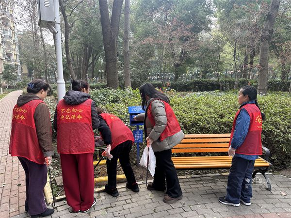 活動(dòng)現(xiàn)場(chǎng),全體人員齊聲合唱《學(xué)習(xí)雷鋒好榜樣》,激昂旋律點(diǎn)燃奉獻(xiàn)熱情。志愿者們分工協(xié)作、有序行動(dòng),一組擦拭樹木認(rèn)養(yǎng)牌、更換嶄新標(biāo)簽,為樹木明確“身份標(biāo)識(shí)”,增添護(hù)綠責(zé)任;另一組擦拭公共休閑椅、科普設(shè)施及兒童游樂(lè)設(shè)施,讓公共空間潔凈如新。