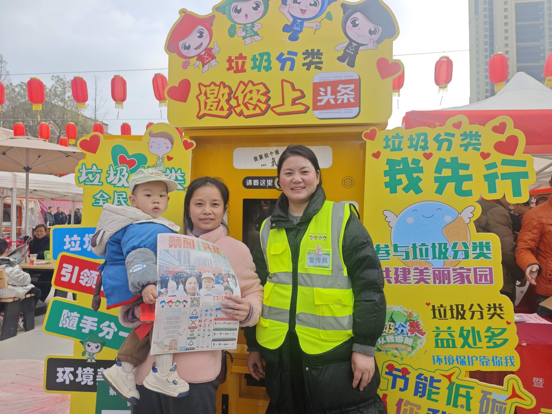 現(xiàn)場(chǎng)還設(shè)置文明實(shí)踐宣傳點(diǎn),蔡甸區(qū)委宣傳部志愿者向居民發(fā)放文明餐桌、移風(fēng)易俗宣傳冊(cè)。蔡甸區(qū)城市管理執(zhí)法局創(chuàng)新運(yùn)用“AI文明拍報(bào)機(jī)”宣傳垃圾分類知識(shí),引導(dǎo)居民踐行“武漢以我為榮”文明素養(yǎng)提升行動(dòng)。“這個(gè)形式太有意思了,這份專屬的‘文明頭條’報(bào)紙,在趣味體驗(yàn)中就深化了垃圾分類、文明公約等知識(shí)記憶?!睅е⒆訁⑴c的張女士興奮地展示著頭條報(bào)紙。