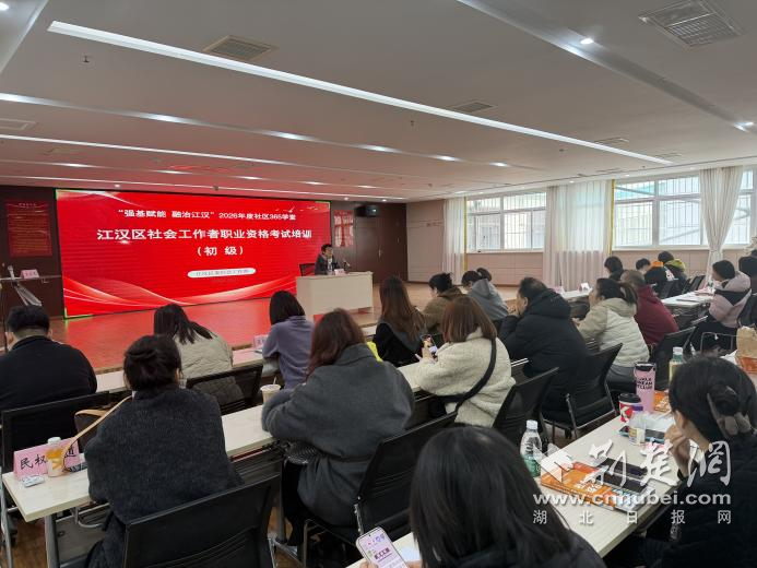 荊楚網(wǎng)(湖北日報網(wǎng))訊(記者 何婧 通訊員 余曉潔)3月6日,江漢區(qū)社會工作者職業(yè)資格考試(初級)集中培訓(xùn)在北湖街道環(huán)保社區(qū)開班,培訓(xùn)采取“線下主會場+視頻分會場”形式開展,全區(qū)各街道及相關(guān)區(qū)直單位的510余名備考人員同步參訓(xùn)。此次培訓(xùn)標(biāo)志著江漢區(qū)“專業(yè)賦能·持證攻堅”專項提升行動進(jìn)入系統(tǒng)推進(jìn)階段。