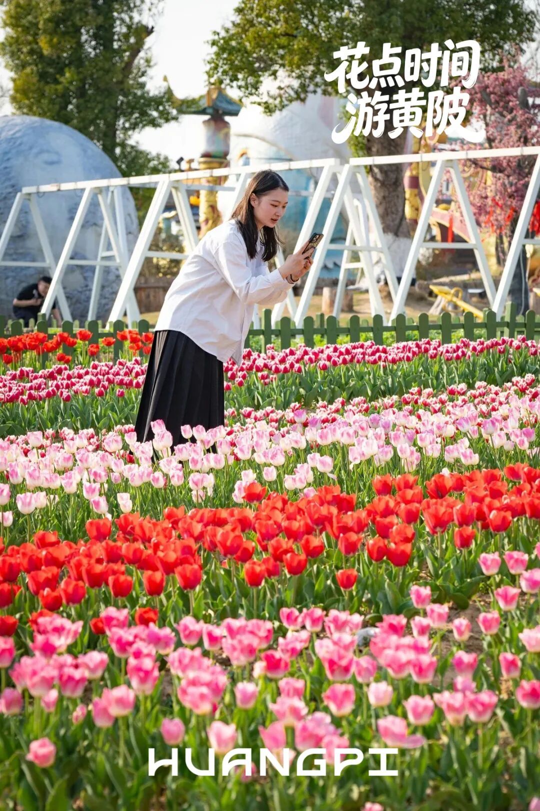 木蘭花鄉(xiāng)的郁金香花海,已經(jīng)進(jìn)入最佳觀賞期!30萬(wàn)盆、數(shù)十個(gè)品種的郁金香從荷蘭漂洋而來(lái),紅的熱烈、粉的嬌柔、黃的明媚、紫的神秘,層層疊疊鋪成10000㎡的「彩虹地毯」,隨手一拍都是油畫感大片。