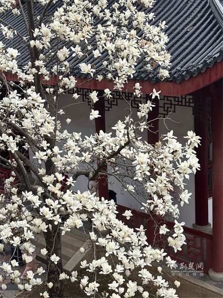 荊楚網(wǎng)(湖北日?qǐng)?bào)網(wǎng))訊(通訊員 杜茜)春日漫步長(zhǎng)春觀,青磚黛瓦之間,幾樹玉蘭花悄然盛放。素白花瓣如云似雪,在古觀的靜謐中輕展身姿,不染塵俗,自帶清逸。微風(fēng)拂過(guò),暗香浮動(dòng),淡淡花香縈繞鼻尖,與道觀的禪意相融,更添幾分空靈。