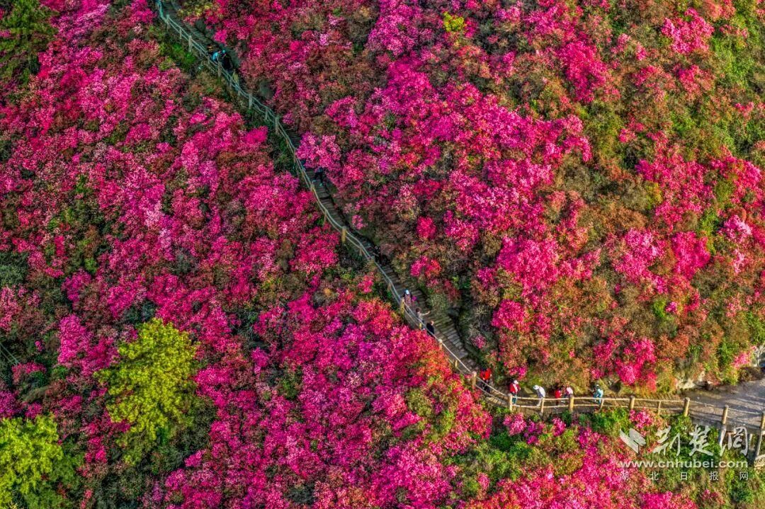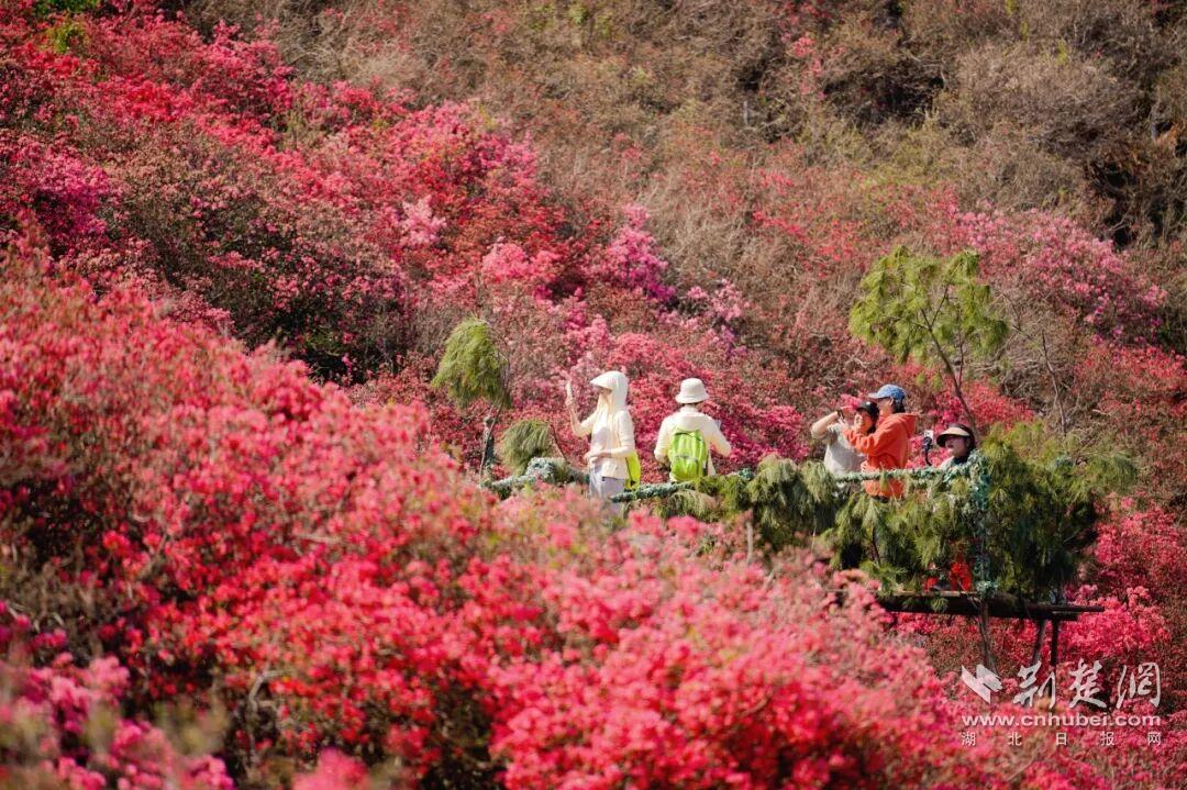 荊楚網(wǎng)(湖北日報網(wǎng))訊(通訊員黃宣)3月21日,2026武漢木蘭云霧山第十七屆杜鵑花嘉年華在黃陂木蘭云霧山景區(qū)啟幕。目前,景區(qū)內花宇山、花海等核心賞花點的杜鵑花已進入初放期,漫山紅遍,景色蔚為壯觀。