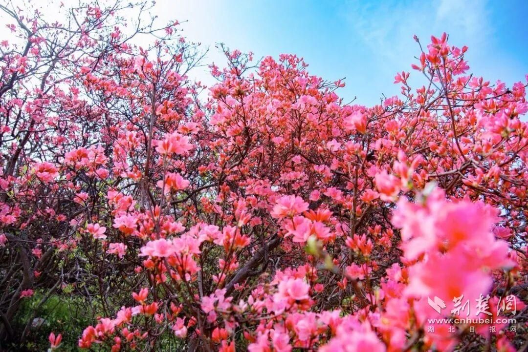 木蘭云霧山擁有武漢最大的高山杜鵑群落,擁有映山紅、白鵑梅等7個品種的野生杜鵑,總面積超過萬畝。依托不同海拔形成的立體氣候,杜鵑花呈現(xiàn)梯次開放格局,賞花期長達50天,可持續(xù)至5月初。