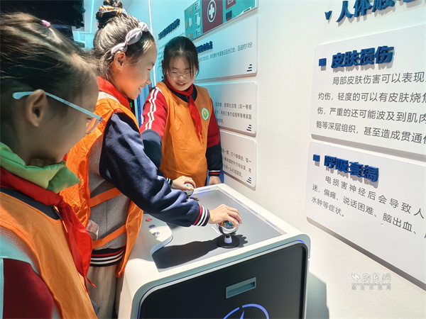 互動(dòng)體驗(yàn)環(huán)節(jié),孩子們?cè)谥驹刚叩膸ьI(lǐng)下有序參觀家庭電路模型、電力沙盤。大家輪番參與觸電、高空墜落等模擬體驗(yàn),挑戰(zhàn)心肺復(fù)蘇、滅火器滅火等應(yīng)急實(shí)操,在趣味互動(dòng)中深化對(duì)安全知識(shí)的理解。