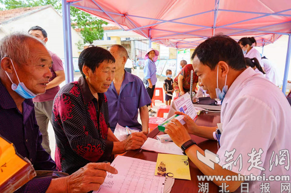 謳樂社區(qū)區(qū)位特殊,距宜城有2個小時車程,距流水鎮(zhèn)衛(wèi)生院有1個小時車程。當(dāng)日,40多名醫(yī)護人員共為1200余村民把脈、問診、開藥、治療。