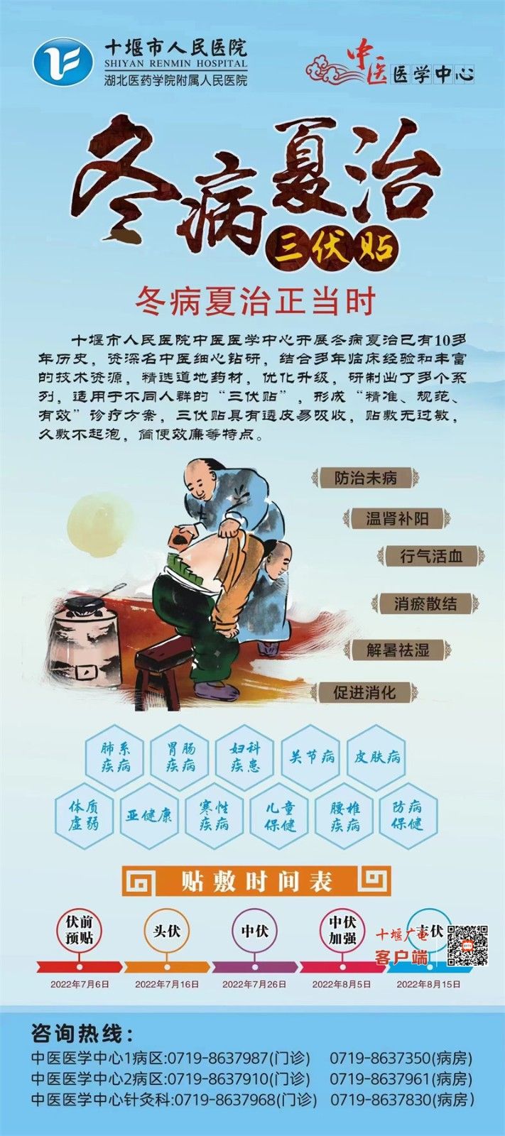 陳峰主任特別提醒:“三伏”穴位貼敷4次為一個(gè)療程,一般需連續(xù)貼敷3年至5年。每次貼敷時(shí)長(zhǎng)2小時(shí)為宜,皮膚敏感者及兒童根據(jù)皮膚耐受程度應(yīng)縮短貼敷時(shí)間,有發(fā)熱、皮膚潰破、體質(zhì)特別虛弱及患有糖尿病及瘢痕體質(zhì)人群幾類疾病人群,不適宜貼敷三伏貼,同時(shí)貼敷三伏貼,應(yīng)在醫(yī)師指導(dǎo)下進(jìn)行貼敷,貼敷過程中,飲食要注意清淡,避免受風(fēng)受涼。