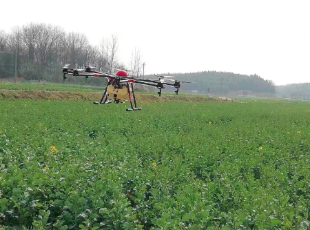 目前,咸寧市咸安區(qū)農業(yè)局植保站已經出動了6個專業(yè)化飛防隊伍,15臺無人機,對當?shù)氐挠筒颂镞M行植保飛防工作。植保站站長曹升記說,“1臺無人機每天的飛防面積要確保在350畝到400畝之間,確保油菜菌核病的防治工作做到位?!?/p>