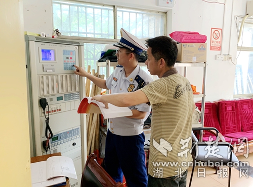 圖為消防監(jiān)督員檢查場(chǎng)所消防設(shè)施現(xiàn)場(chǎng)?!∪顣苑覕z