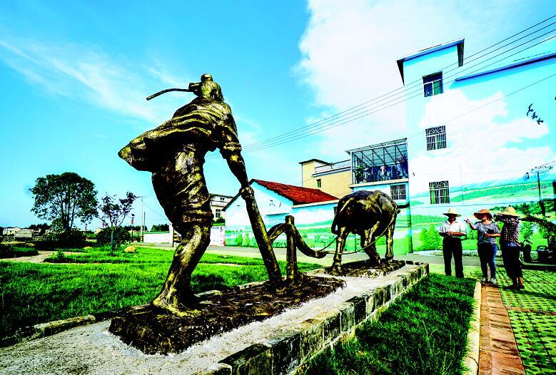 咸安區(qū)向陽湖鎮(zhèn)寶塔村郭家灣文化廣場。寶塔村近年來投入300余萬元進(jìn)行美麗村灣建設(shè)。目前已進(jìn)行景觀路、村灣墻面藝術(shù)墻繪、立體觀光農(nóng)業(yè)大棚、4000平方米綠化帶等項目建設(shè),栽種景觀樹1000余棵。(湖北日報全媒記者 陳勇 通訊員 李星 吳濤 攝)