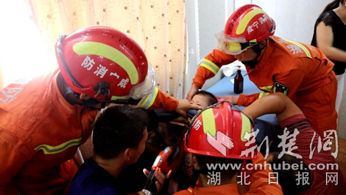 荊楚網(wǎng)消息(通訊員 劉麗娜 朱濤)7月10日15時09分,湖北省咸寧市消防救援支隊指揮中心接到報警稱:通山縣龍鼎麗都美容院2樓小孩頭被卡住,急需救援。接到報警后,通山縣消防救援中隊出動1輛消防車、6名消防指戰(zhàn)員緊急趕赴現(xiàn)場進行處置。