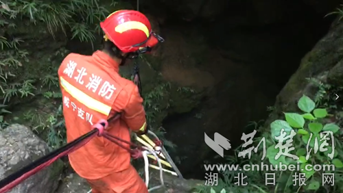 消防員徒步半個多小時后,到達事故現(xiàn)場,現(xiàn)場是10多米的深洞,一名20多歲的年輕男子在洞內(nèi)呼救。據(jù)消防員介紹,今年3月10日,在同樣的地點,消防員也曾救出因好奇入洞探險男子。