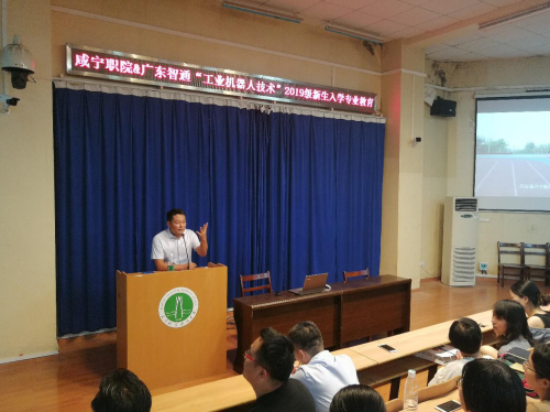 咸寧網(wǎng)訊 記者 金娓 通訊員 趙君:9月8日,咸寧職業(yè)技術(shù)學(xué)院邀請(qǐng)智通教育的智能制造專家李向陽來校開展“做”時(shí)代的急先鋒——高職學(xué)生“工業(yè)機(jī)器人技術(shù)”專業(yè)職業(yè)規(guī)劃,現(xiàn)場(chǎng)座無虛席、氣氛熱烈。