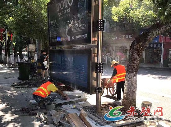 赤壁網(wǎng)消息(記者 聶愛陽(yáng))近日,在赤壁城區(qū)公交站臺(tái)、大眾餐館、家聯(lián)超市、老水利局、一橋……都能看到他們的身影——烈日下的一抹桔,用電鉆、角鋤、鐵鍬撬動(dòng)原有的地面,用泥漿、錘頭、抹泥刀,鋪設(shè)上全新的大理石。