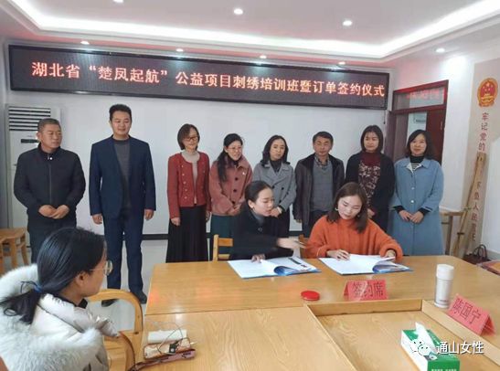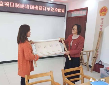 2019年12月11日,通山“繡娘”獲得首批訂單,踏上將“指尖技能”轉(zhuǎn)化為“指尖財(cái)富”的第一步,也是通山縣“巧山姑”手工技能培訓(xùn)項(xiàng)目初步成效的體現(xiàn)。訂單設(shè)定老鼠生肖肚兜、高山流水書(shū)簽、小夜燈繡片等12種樣式,共含繡刺任務(wù)500余件。繡娘收到訂單消息后,各個(gè)歡欣鼓舞,喜笑顏開(kāi),不少繡娘們互相鼓勁打氣,摩拳擦掌準(zhǔn)備大干一場(chǎng)?;貞?yīng)繡娘們的殷切期盼,訂單簽訂儀式于當(dāng)天下午在通山縣南林橋鎮(zhèn)石門(mén)村舉行,咸寧市婦聯(lián)主席陳海蓮、副主席張繼萍、通山縣副縣長(zhǎng)張曉丹參加活動(dòng),縣婦聯(lián)主席張丹主持。