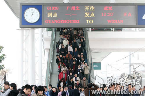 中午11時(shí)46分,列車停靠廣州北站,歷時(shí)僅2小時(shí)46分鐘。在站臺(tái)上,記者遇到了一位帶著小孩的江西九江乘客,她興奮告訴記者,“我是慕名專程到武漢坐高鐵快車到廣州探親的,沒想到不到3個(gè)小時(shí)就到了,簡直不敢想!