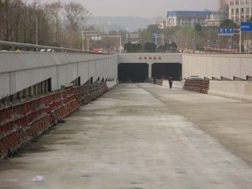 水果湖隧道是二環(huán)線工程的重要節(jié)點工程,隧道南起湖北省審計廳正門,沿線經(jīng)過中科院水生物研究所、東湖南路、東湖、東湖賓館,北至東湖路湖北省消費協(xié)會,全長1735米,隧道內(nèi)為雙向四車道,采用鋼板樁圍堰明挖法施工。隧道工程內(nèi)容包括隧道主體結(jié)構(gòu)工程以及機電設(shè)備安裝、隧道裝飾裝修、消防、監(jiān)控、交通、照明等附屬工程。工程總投資5.37億元。