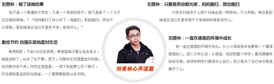 劉普林的可貴不僅在于為母分憂,而是一起掃街的身影讓人動(dòng)容,母慈子孝承載著無數(shù)中國(guó)人企盼家庭和樂的人生理想。