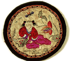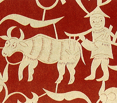 布貼亦稱補花,是刺繡的一種形式。它利用做衣被剩下的邊角碎料,在底布上拼成各成圖案,先用漿糊貼牢,再用針線沿著圖案紋樣的邊鎖繡,將其固定。鄂東南陽新一帶農(nóng)村姑娘出嫁,大都隨身攜帶一個別致的“布角包”,內(nèi)裝縫制嫁衣嫁妝時余下的……    詳細
